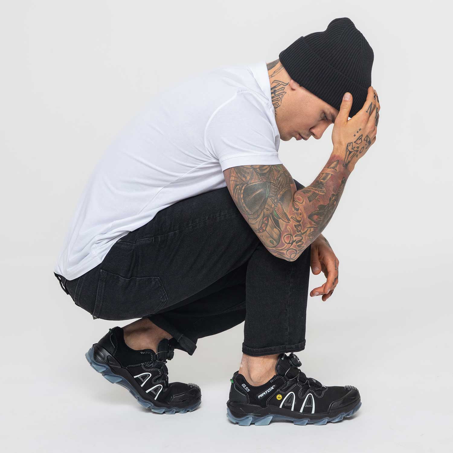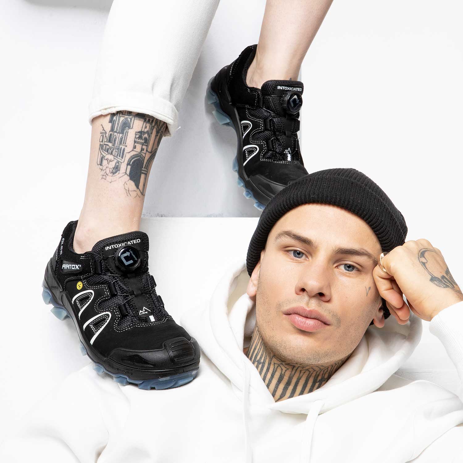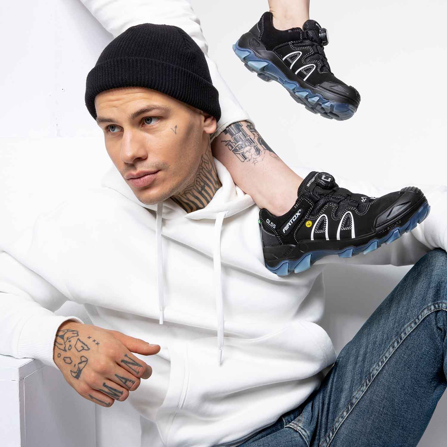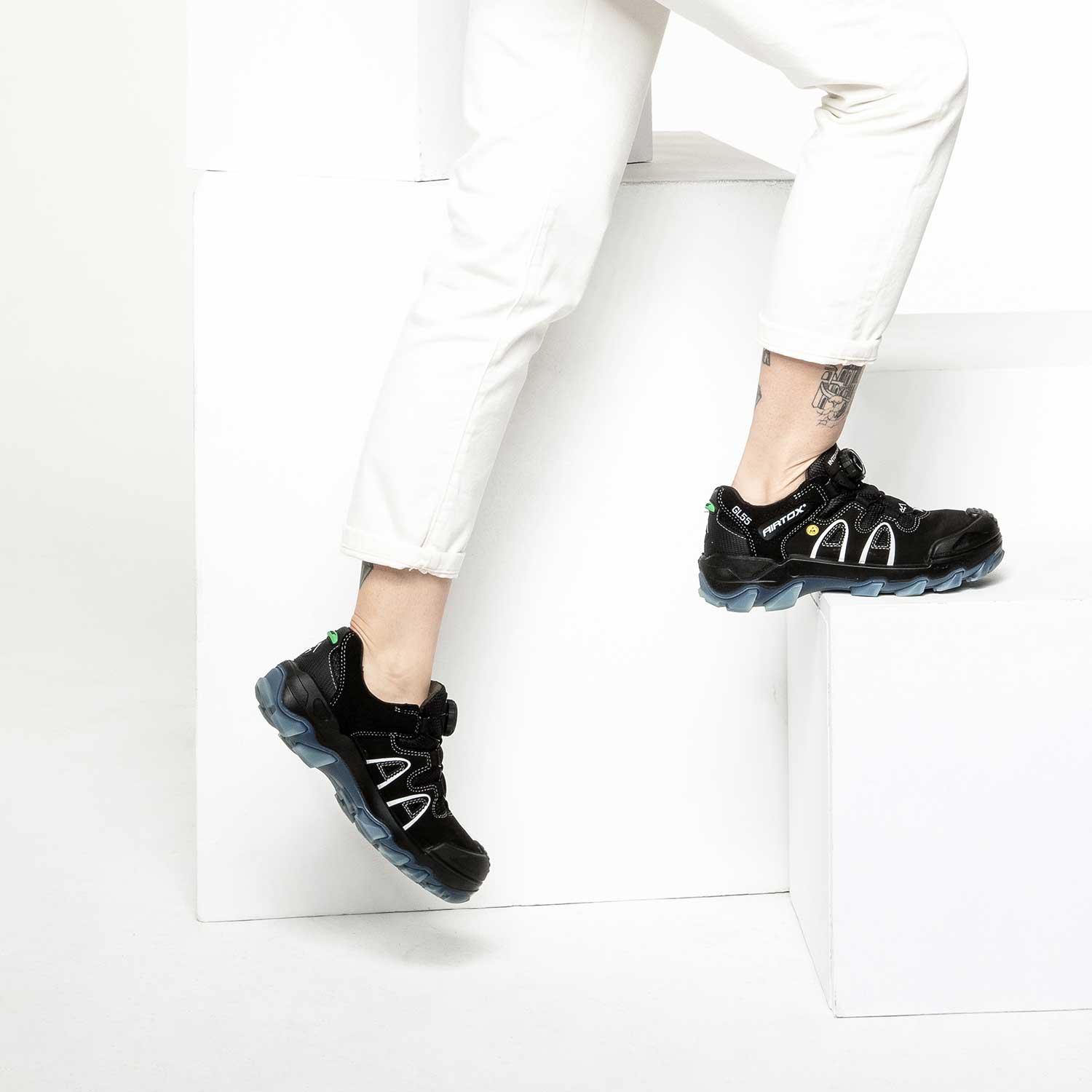 En højteknologisk sikkerhedssko spækket med avancerede funktioner, inklusive den revolutionerende Whitelayer®-sømværn, - stærk som stål, men alligevel blød som stof. Den er også udstyret med en specialdesignet ergonomisk aluminiumståkappe, der sikrer en behagelig og sømløs pasform.
